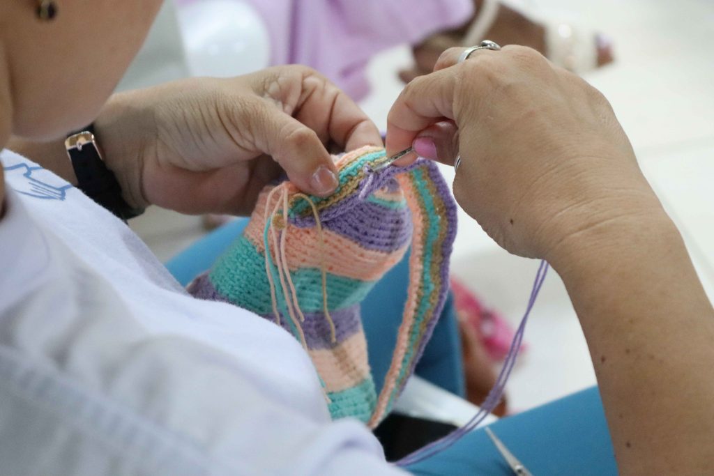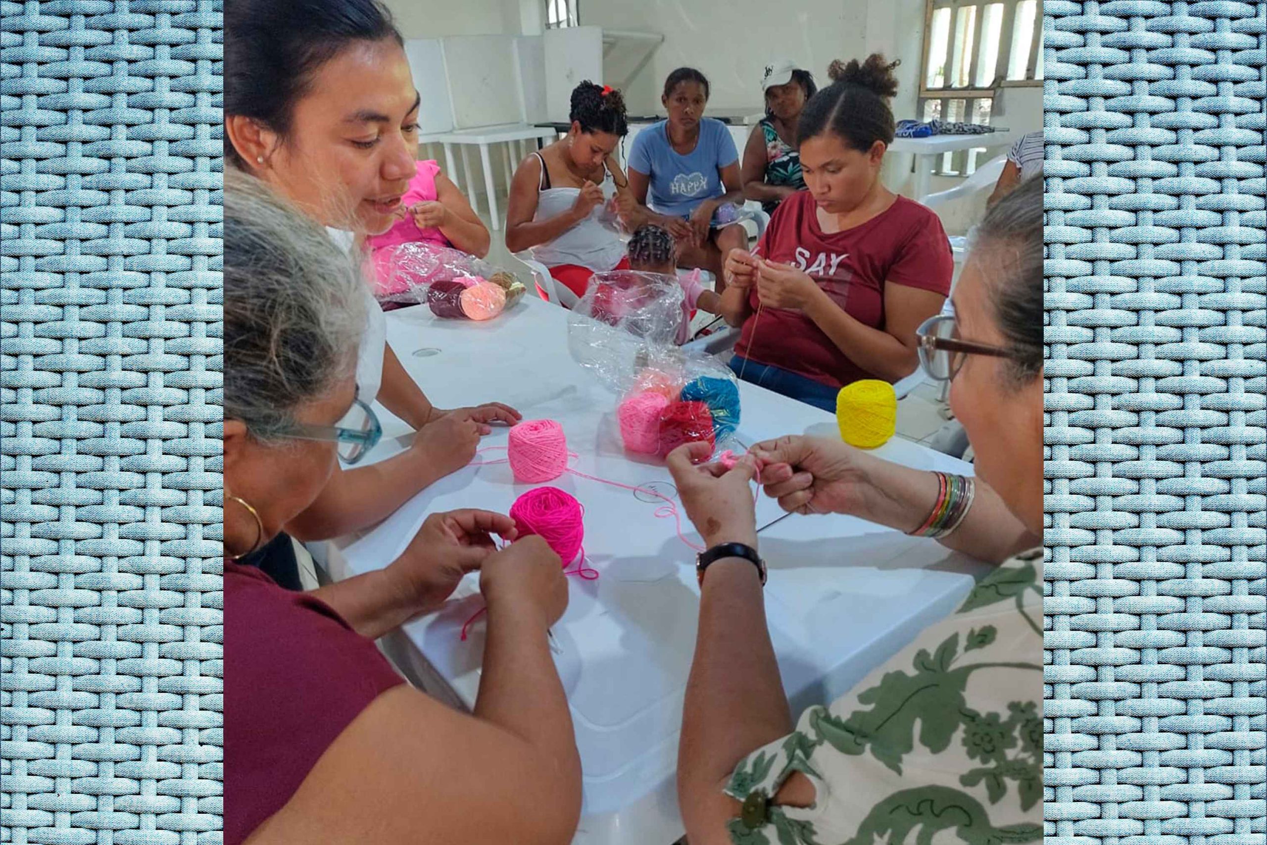 En el componente de tejido en crochet, las participantes aprenden diferentes técnicas artesanales para la elaboración de productos como mochilas, bolsos y accesorios, fortaleciendo su creatividad y habilidades manuales.